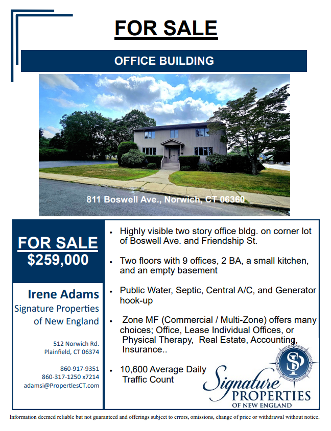 DIRECTIONS: I-395 S  Exit 18. Turn right on Taftville-Occum Rd, which turns into Norwich Ave. About 2 miles, bear right on Route 12. On left, corner of Boswell Avenue and Friendship Street. I-395-N Exit 13-A.  At stop light, go straight on Harland Rd. About 1 mile, turn right onto Hunters Rd. At end, turn right onto Norwich Ave. About 0.3 miles on left.